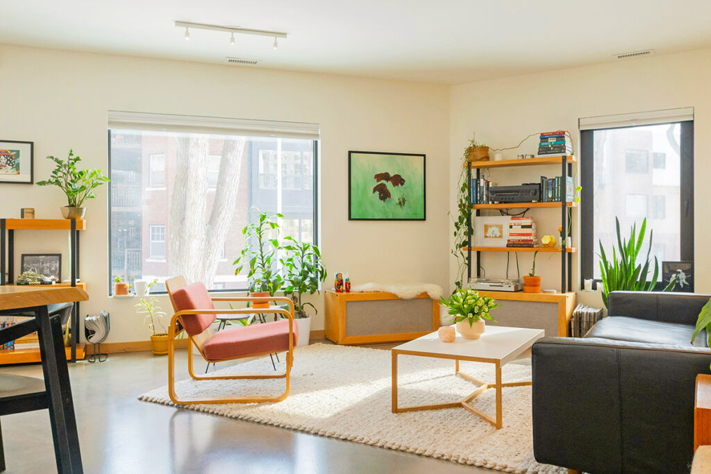Spaces feel more intimate when they’re “enclosed.” For example, a lone chair can look awkward, but add a lamp and side table beside it, and suddenly it transforms into an inviting nook.